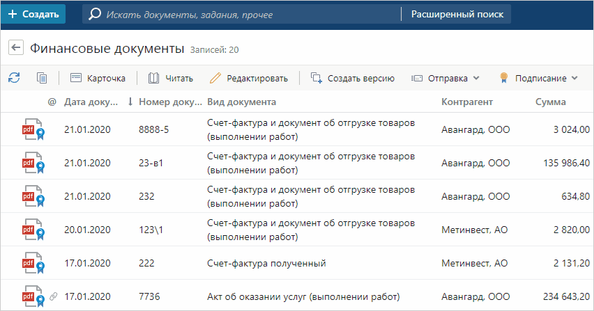 Создание объектов системы Создавайте документы, папки, задачи и другие объекты системы по кнопке При нажатии на кнопку появляется выпадающий список, в котором можно выбрать объекты для создания в текущем списке, а также объекты, которые вы создавали недавно. Если нет нужного типа объекта, можно открыть полный список типов объектов системы.